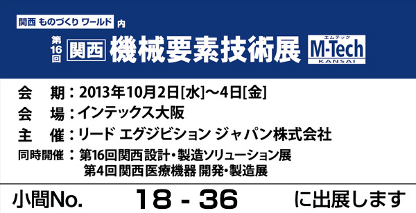 「インテックス大阪」で開催されます「第16回関西機械要素技術展」に弊社展示ブースを設けます。